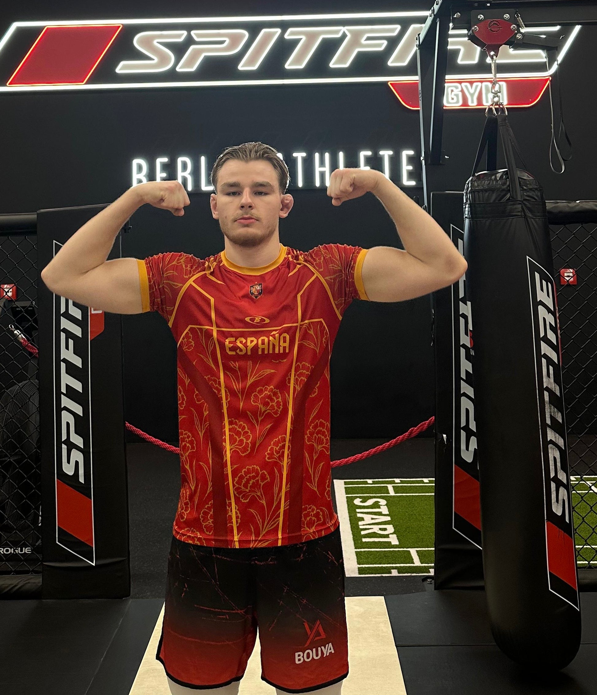 Das Performance Shirt besteht aus 100 % hochwertigem Polyester vereint erstklassige Qualität mit modernem Design. Ob im Gym, beim Kampfsporttraining oder als stylisches Lifestyle-Oberteil – dieses Shirt bietet dir atmungsaktiven Komfort und eine perfekte Passform. Trage dein Statement mit Stolz und zeige deine Leidenschaft für Spanien – überall, wo du bist.